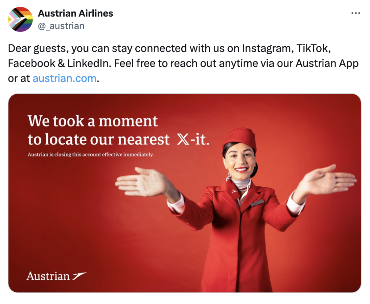 This feels a bit more like an end-of-2024 trend, but the trickle of users leaving X/Twitter over the past year has apparently turned into a flood over the past month. Whatever your thoughts on Elon Musk’s politics, it feels clear that a turning point has been reached, with major organisations now leaving the platform. Austrian Airlines in particular have done so with some flair: