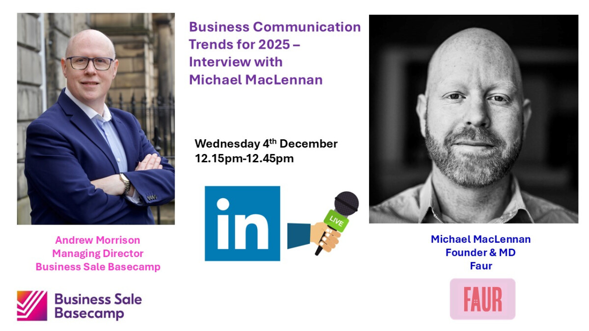 On Wednesday 4th December, 2024, I have the delight of speaking with Andrew Morrison of Business Sale Basecamp. We will discuss some of the key digital communication trends to look out for in 2025 while also touching on wider shifts that will influence the broader communications field.